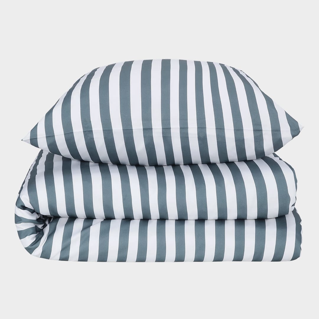 Hvidt og gråt stribet bambus sengetøj 140×200 i højt kvalitets- og komfortniveau Vores bambus sengetøj 140×200 i hvide og grålig blå striber, giver dig den helt nødvendige ro i krop og sind for at falde i søvn og vågne veludhvilet hver morgen. Sættet inde