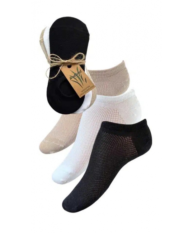 Festival 3-pak Bamboo viscose sneaker sok med silicone i hæl i multifarve til kvinder